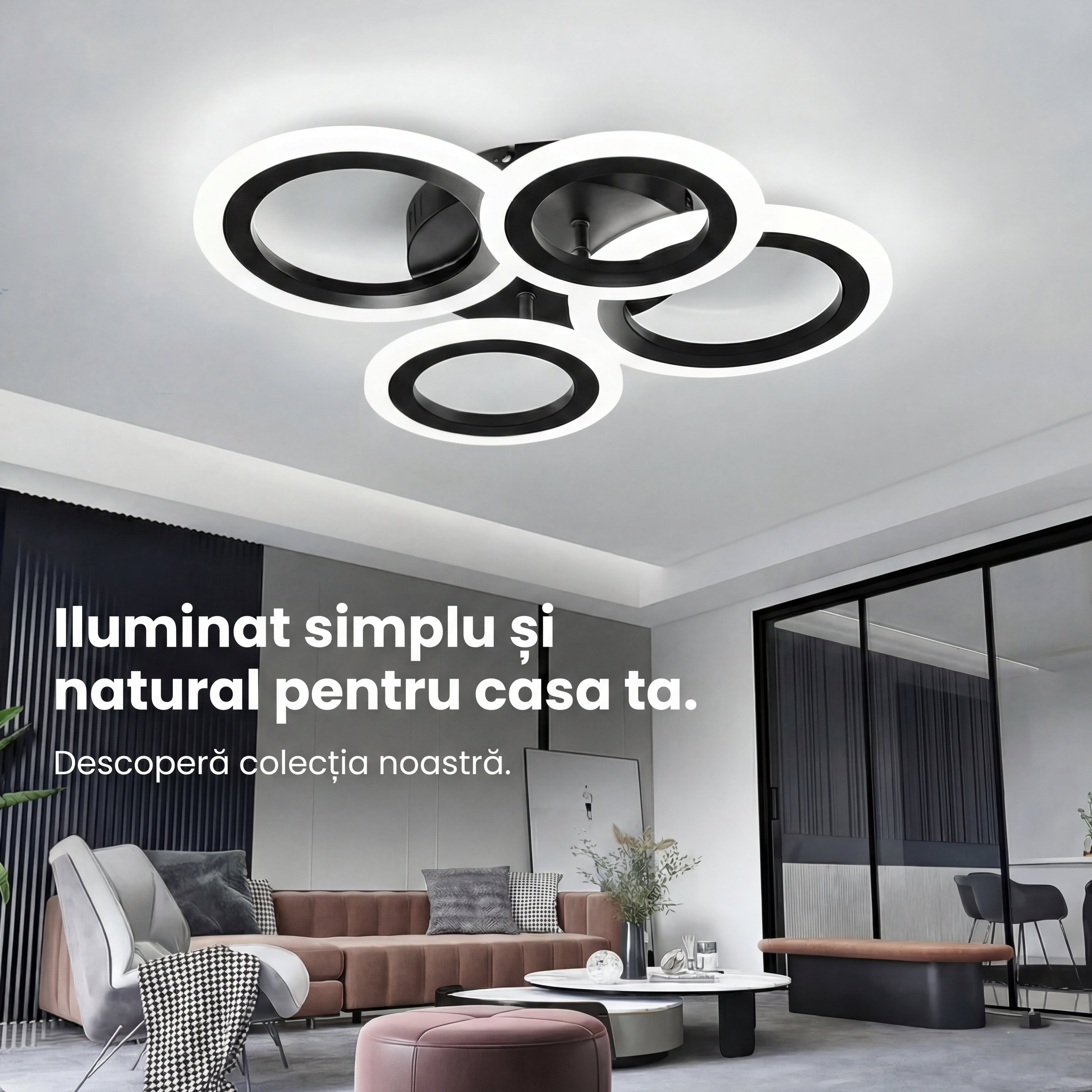 Lustra LED tavan TWO RINGS neagra 48W, echivalent 200W, lustra rotunda moderna 25cm