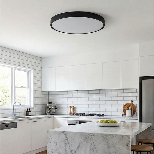 Plafonieră LED Rotundă 50 cm, Ultra Slim, Neagră, IP44 – Echivalent 600W