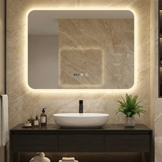 Oglinda LED Dreptunghiulara cu Ceas 80x60cm Functie Dezaburire si Touch
