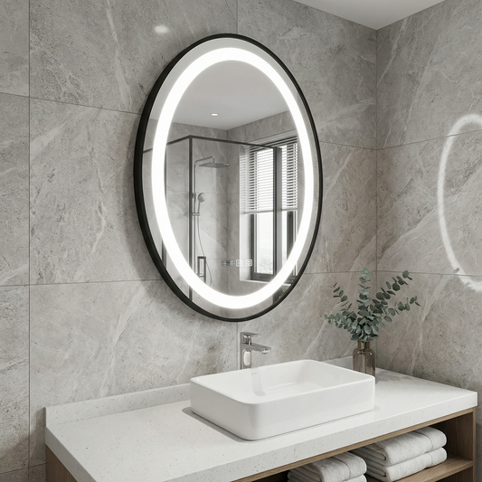 Oglindă LED premium cu senzor touch pentru baie, diametru 80 cm, design modern